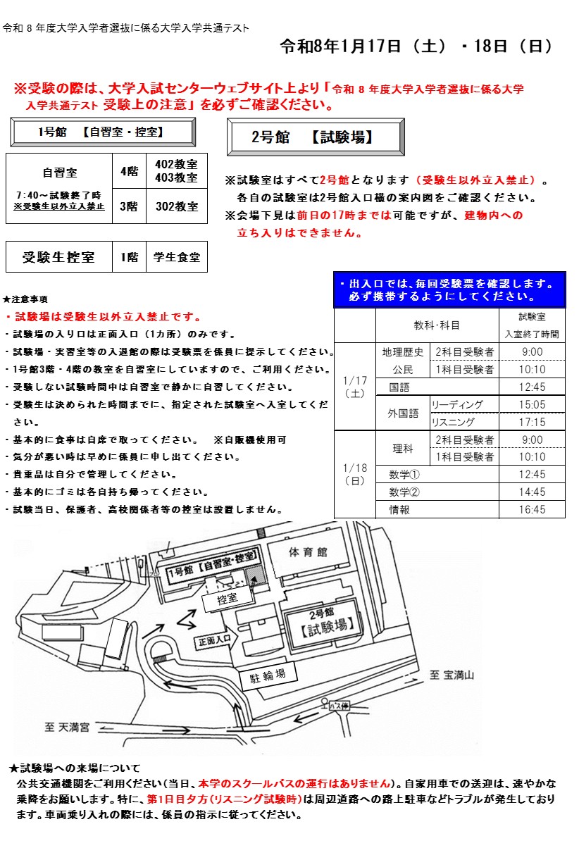 本学で大学入学共通テストを受験される方へ